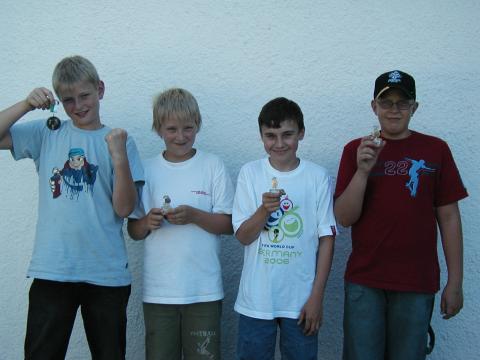 teme fallen nicht unter das Waffengesetz, da die Schussabgabe nur simuliert wird. Dadurch können hierdurch bereits Kinder im Alter von 6 Jahren an den Schießsport herangeführt werden. An allen drei Stationen konnten Punkte gesammelt werden. Am Ende wurden mit Frederik Schmitz (17 Punkte) sowie Simon Regelin (16 Ounkte) sowie Dennis Frohn und Joshua Knop (beide 15 Punkte) die Erstplatzierten mit einem Ehrenpreis ausgezeichnet. | |||||||||||