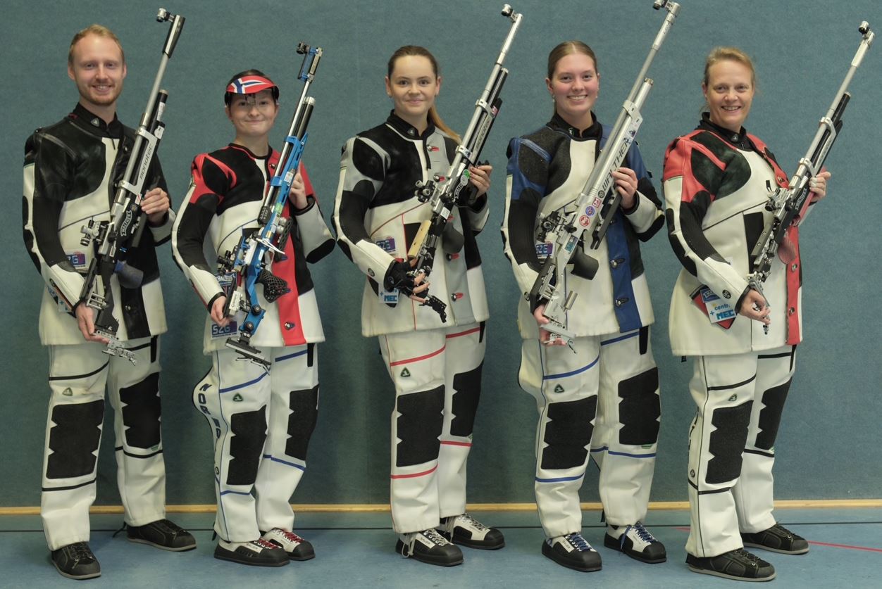 | Mit (von links) Bastian Blos, Pernille Nor-Woll, Antonia Ziegler, Nike Fischer und Katja Blos starteten die Ohligser Sportschützen in ihre zweite Bundersliga-Saison. | |||||||||