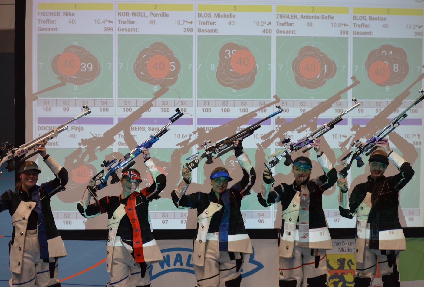 | Nike Fischer, Pernille Nor-Woll, Michelle Blos, Antonia Ziegler und Bastian Blos (v.l.) freuen sich über ihren neuen Teamrekord - 1990 Ringe. | |||||||||