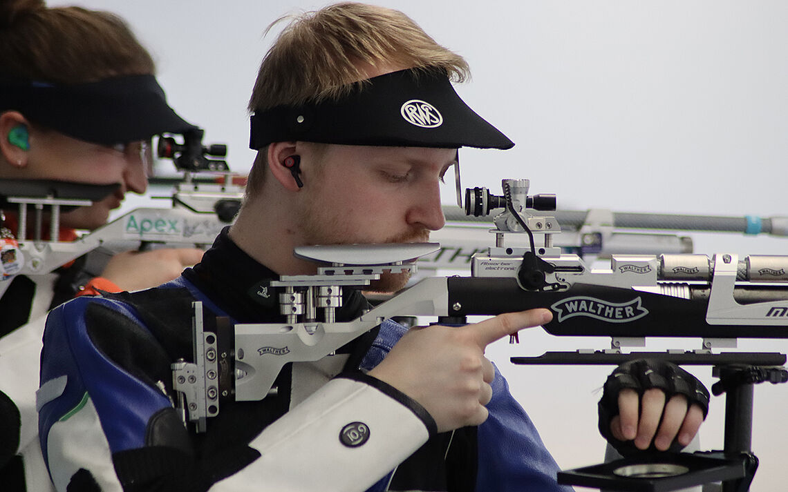 Am 29. und 30. Januar 2022 fand dann in Wiesbaden die zweite EM-Qualifikation statt. Hier musste die Entscheidung fallen, welche drei Schützen die deutschen Farben in Norwegen vertreten werden. Bastian ging mit 1875,9 Ringen hinter den führenden David Koenders (1884,6 Ringe) und Dennis Welsch (1882,5 Ringe) als dritter in die Wettkämpfe und hatte vor dem Viertplatzierten Toma Barbe (1871,0 Ringe) einen kleinen Vorsprung, den es zu verteidigen galt. Mit 621,7 und 624,8 Ringen blieb Bastian etwas hinter seinen Möglichkeiten, konnte aber dennoch seinen Vorsprung auf Tom Barbe ausbauen und sicherte sich somit seine Teilnahme an den Europameisterschaften. Zusammen mit David Koenders und Dennis Welsch bildet Bastian Blos nun das Luftgewehrteam, welches bei der Europameisterschaft für Deutschland an den Start gehen wird. |