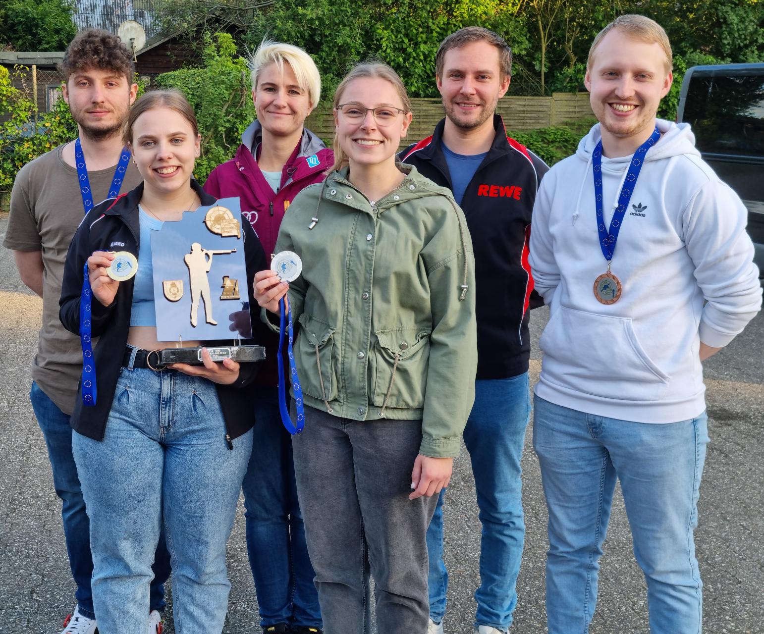 Etwas enttäuscht zeigten sich Danny Smeet und Klaus Lamers darüber, dass nach der zweijährigen Corona-Pause lediglich neun Teams an den Start gingen. Trotz allem führte beide hervorragend durch das Turnier. Aber nun zum sportlichen Ablauf. Mit starken Ergebnissen belegten die beiden Ohligser Teams nach der Vorrunde die Plätze eins und drei. In Team 1 (1252,9 Ringe) starteten Michelle Blos (417,9 Ringe), Robin Zissel (419,1 Ringe) und Bastian Blos (415,9 Ringe). Die zweite Mannschaft (1226,7 Ringe) bestand aus Nadine Volkart (410,6 Ringe), Hanna Engelken (409,7 Ringe) und Alexander Kobert (406,4 Ringe). Zwischen den Ohligser Teams belegte die Erstvertretung vom PSS Inden/Altdorf (1229,9 Ringe) den zweiten Platz. Auf den Plätzen vier bis neun folgten der SV de Grenstreek I (1217,7 Ringe), die SG Hamm (1192,1 Ringe), PSS Inden /Altdorf II (1161,3 |
