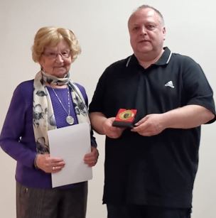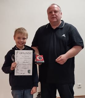 | Vereinsvorsitzender Stefan Blos durfte auf der Jahreshauptversammlung langjährige Mitglieder auszeichnen: Jonas Blos (Bild links) ist schon 10 Jahre OSG-Mitglied, ebenso wie Aljoscha und Marcel Rohleder (Bild mitte). Anneliese Henkel (Bild rechts) blickt bereits auf eine 50jährige Mitgliedschaft zurück. | ||||||||